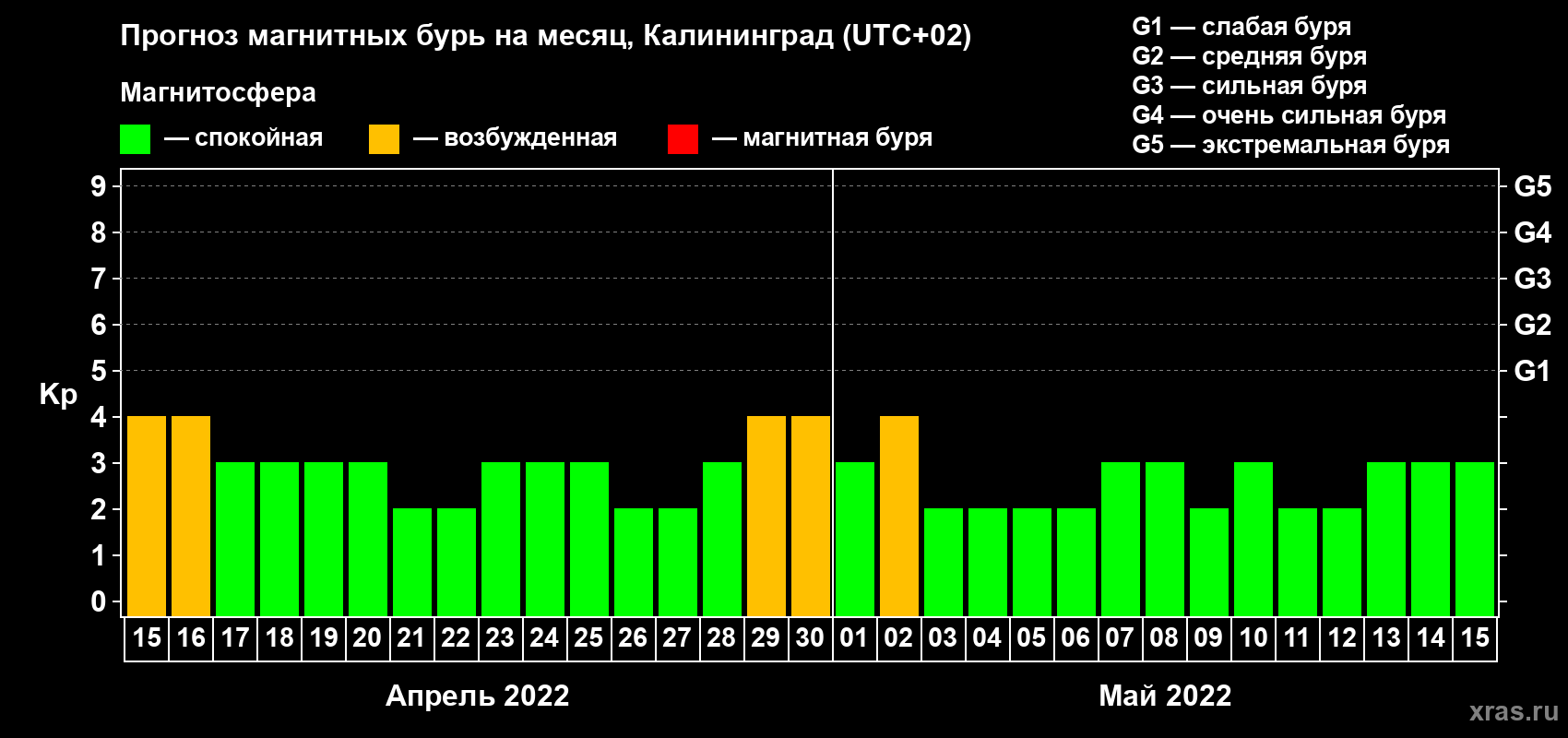 Прогноз магнитных бурь в Калининграде — 15 апреля 2022 года