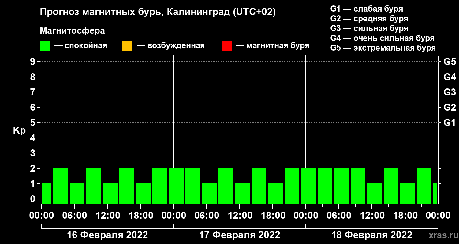 Прогноз магнитных бурь в Калининграде — 16 февраля 2022 года