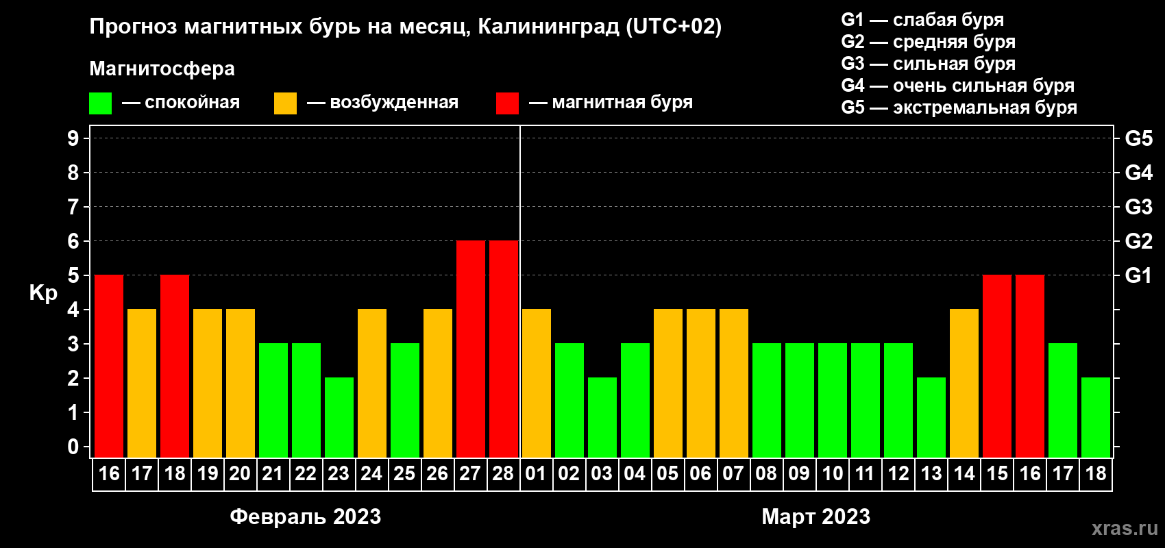Прогноз магнитных бурь в Калининграде — 16 февраля 2023 года