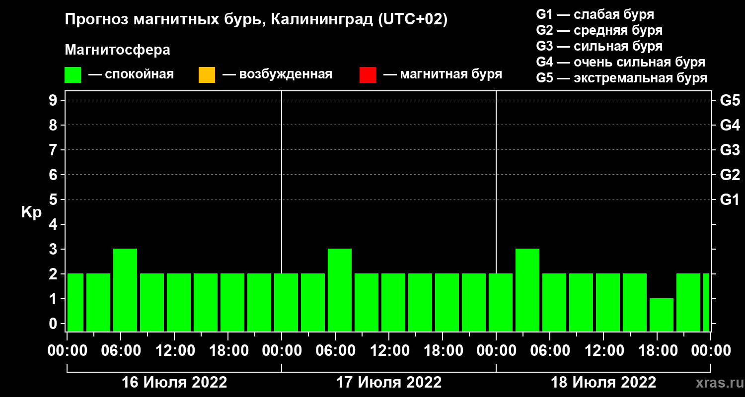 Прогноз магнитных бурь в Калининграде — 16 июля 2022 года