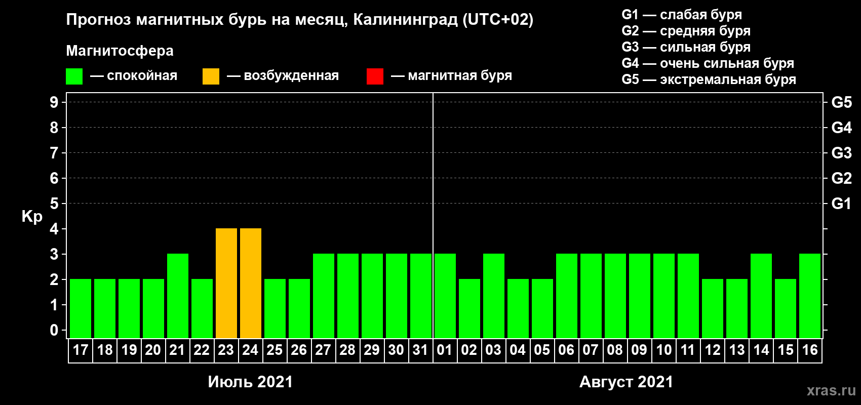 Прогноз магнитных бурь в Калининграде — 17 июля 2021 года
