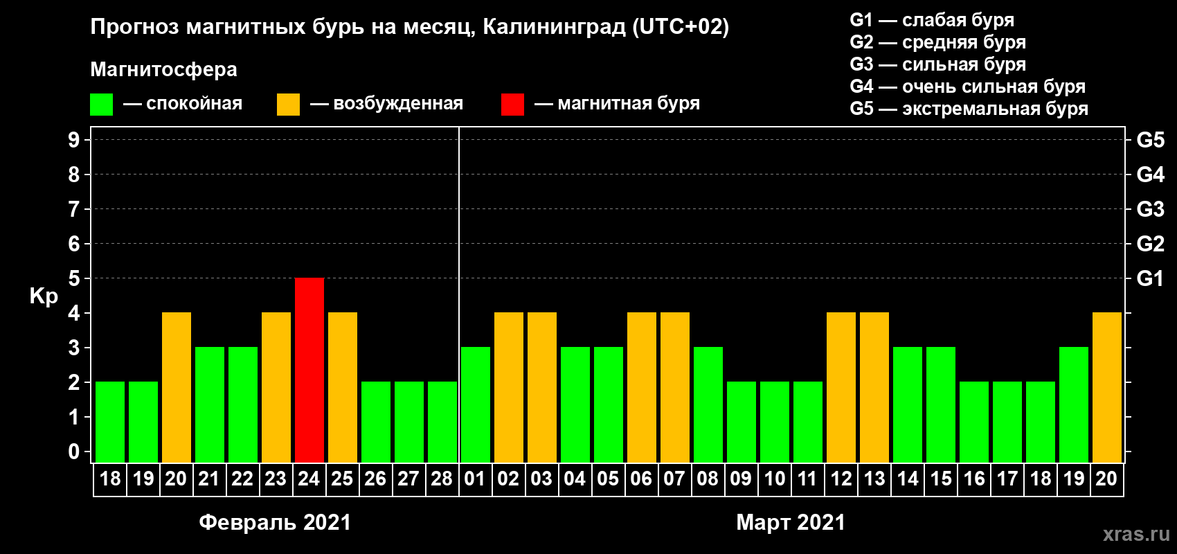 Прогноз магнитных бурь в Калининграде — 18 февраля 2021 года