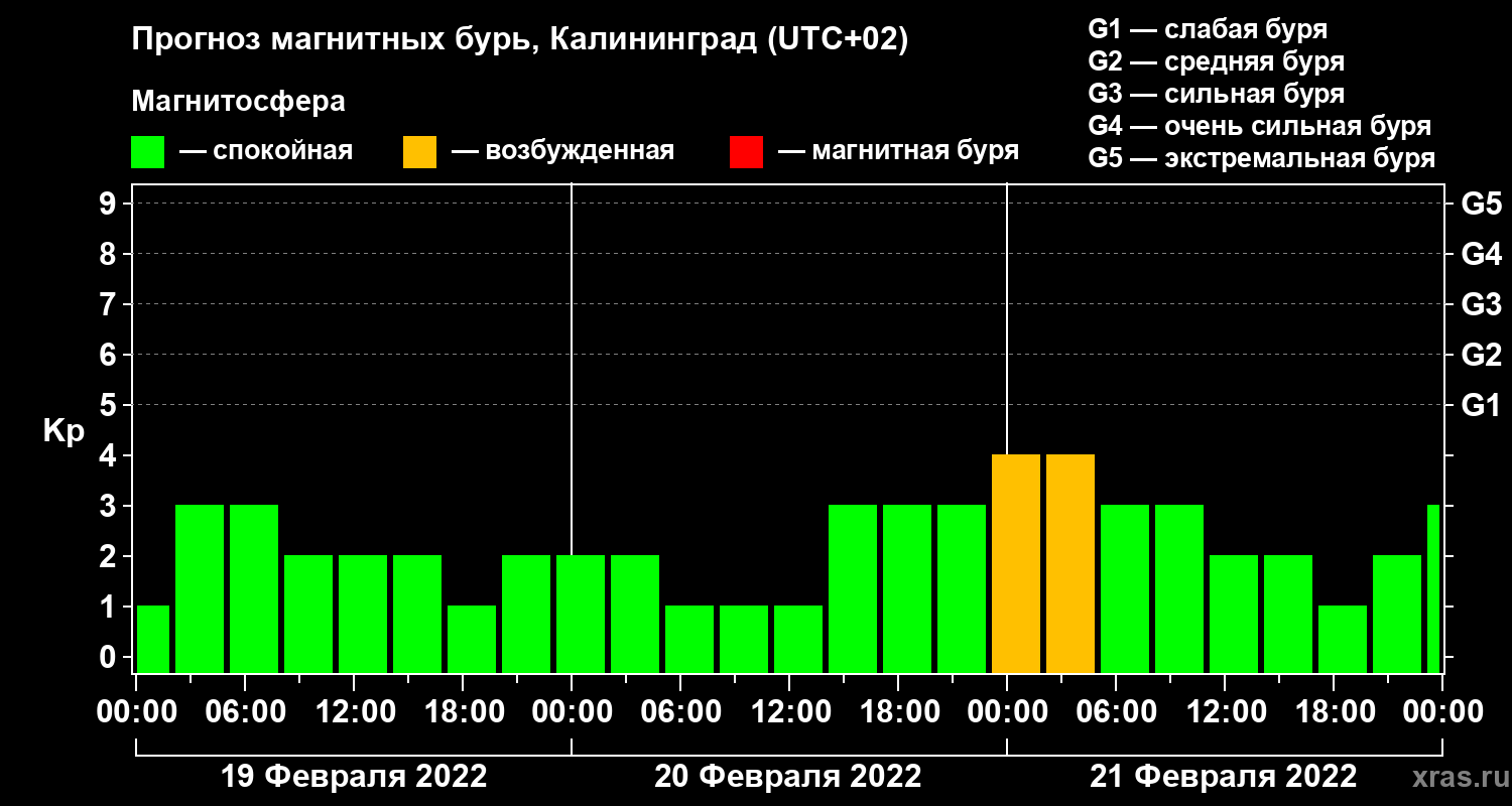 Прогноз магнитных бурь в Калининграде — 19 февраля 2022 года