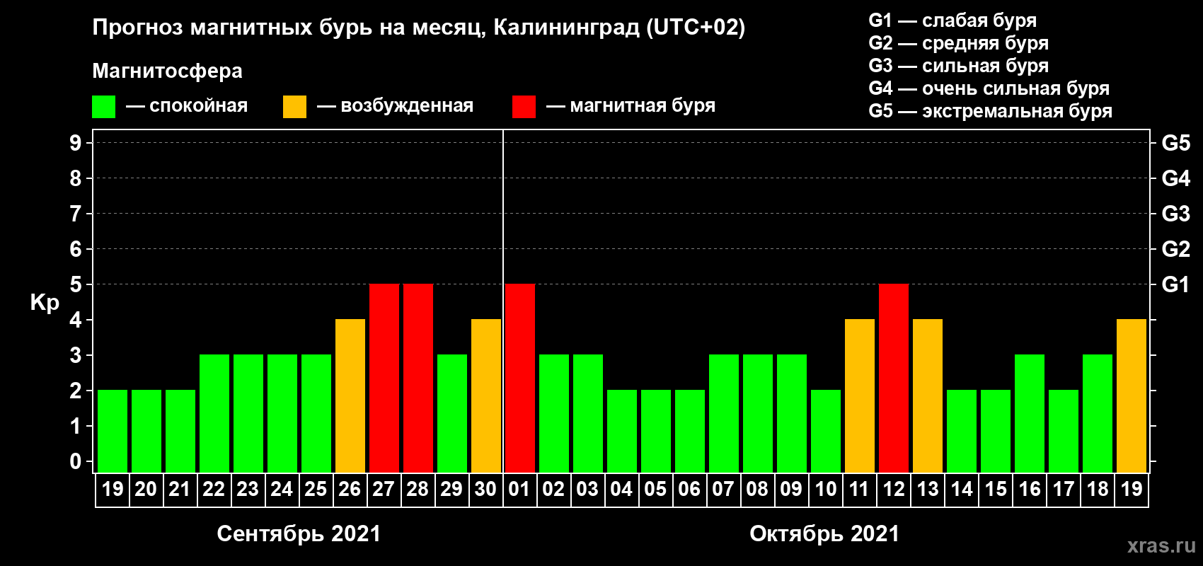 Прогноз магнитных бурь в Калининграде на 19 сентября 2021 года