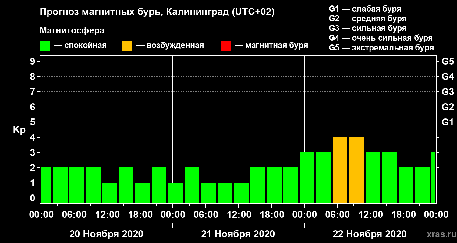 Прогноз магнитных бурь в Калининграде — 20 ноября 2020 года