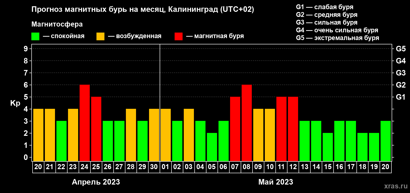 Прогноз магнитных бурь в Калининграде — 20 апреля 2023 года