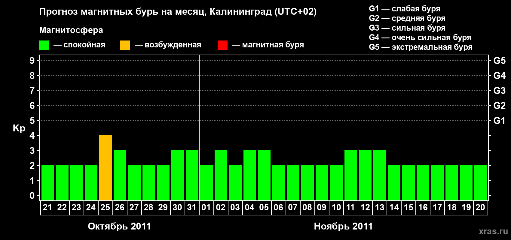 Прогноз магнитных бурь в Калининграде — 21 октября 2011 года