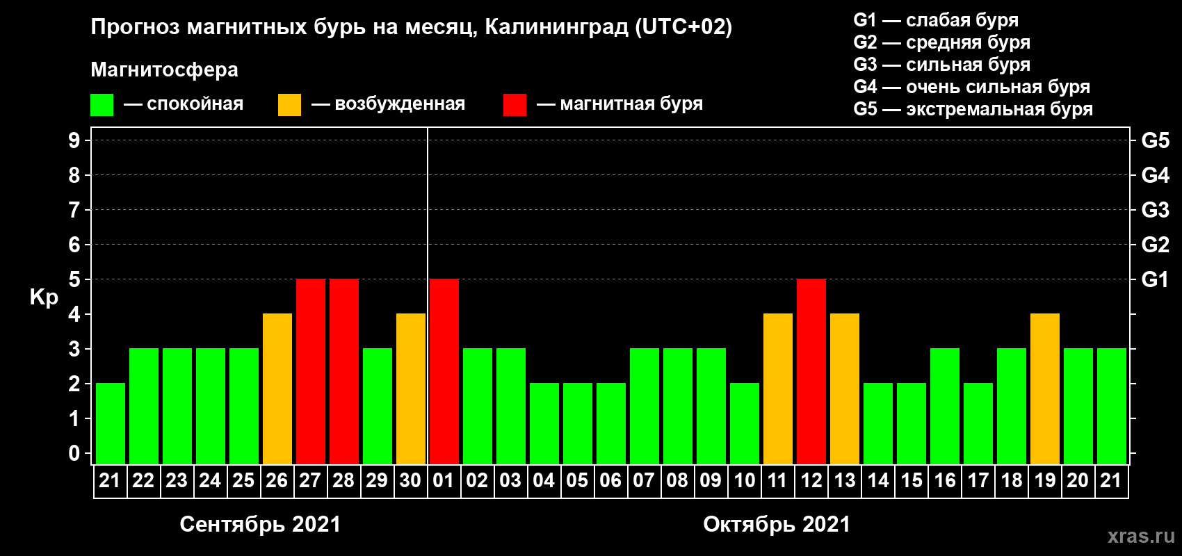 Прогноз магнитных бурь в Калининграде — 21 сентября 2021 года