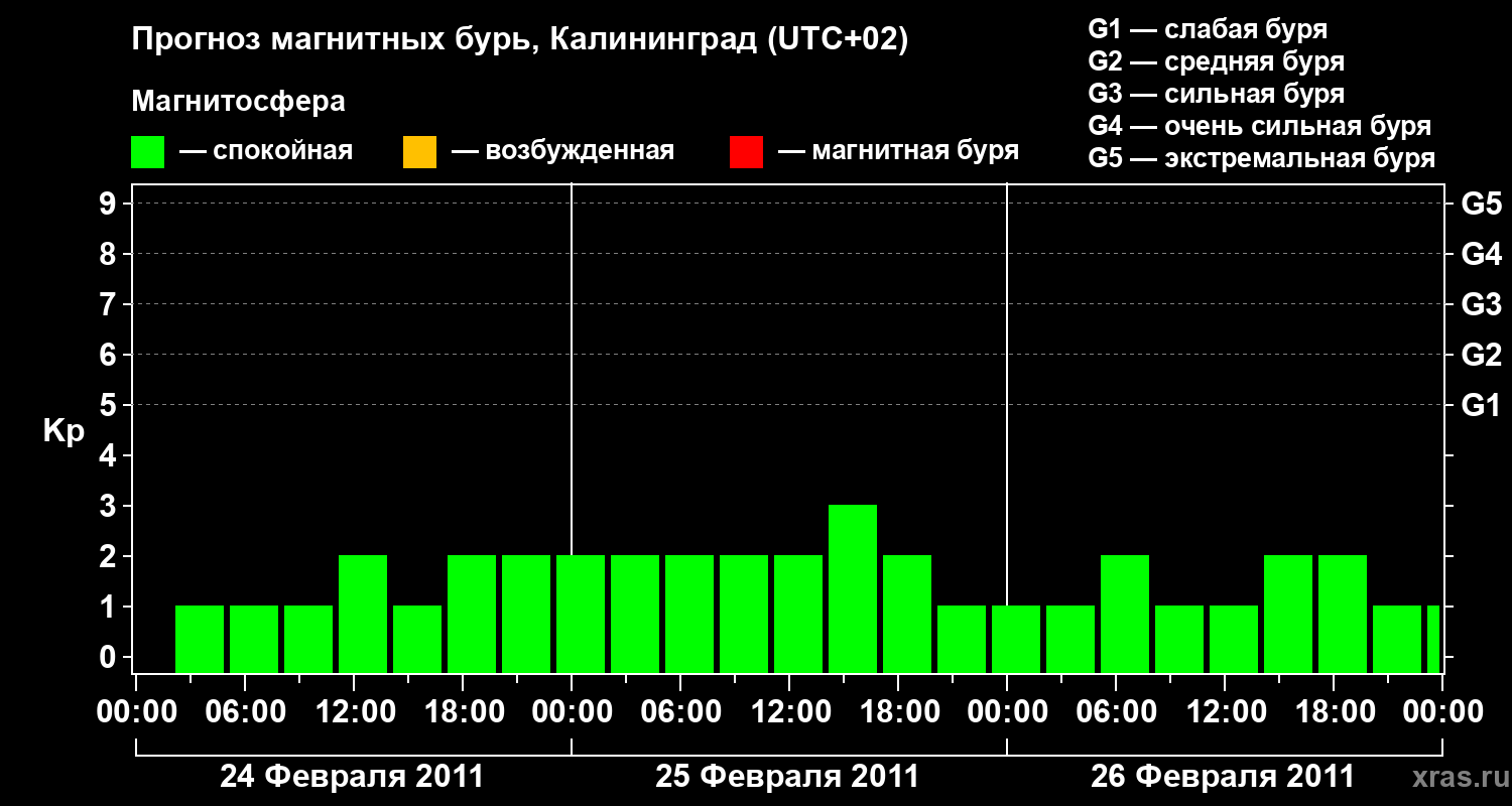 Прогноз магнитных бурь в Калининграде — 24 февраля 2011 года