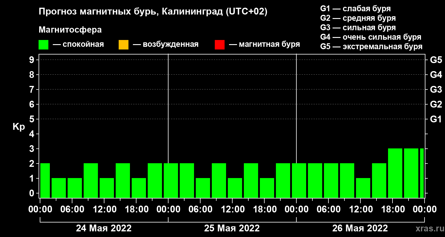 Прогноз магнитных бурь в Калининграде на 24 мая 2022 года