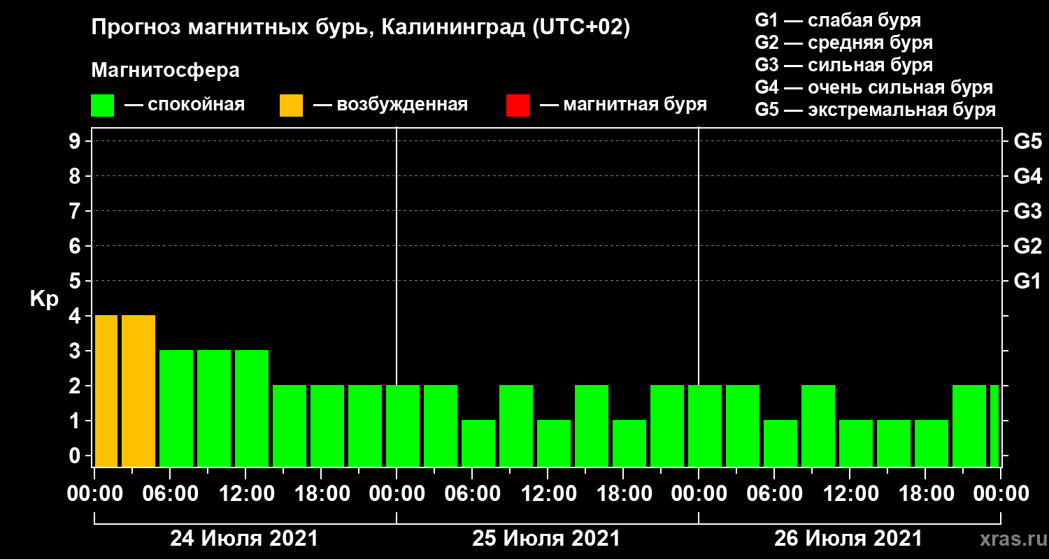 Прогноз магнитных бурь в Калининграде — 24 июля 2021 года