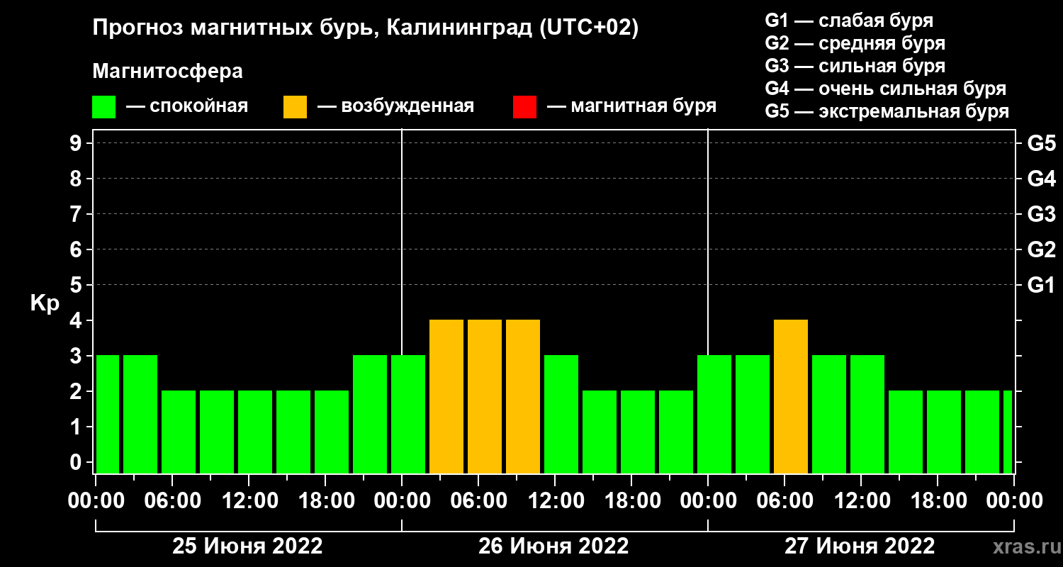 Прогноз магнитных бурь в Калининграде — 25 июня 2022 года