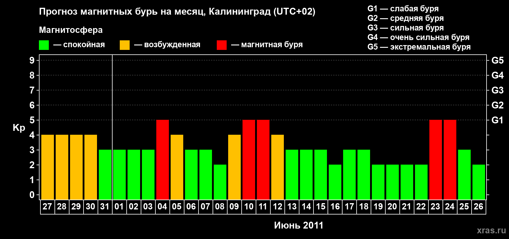 Прогноз магнитных бурь в Калининграде — 27 мая 2011 года