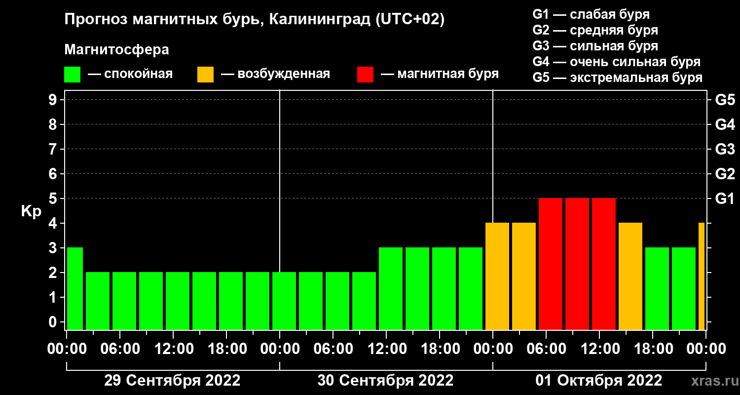 Прогноз магнитных бурь в Калининграде — 29 сентября 2022 года
