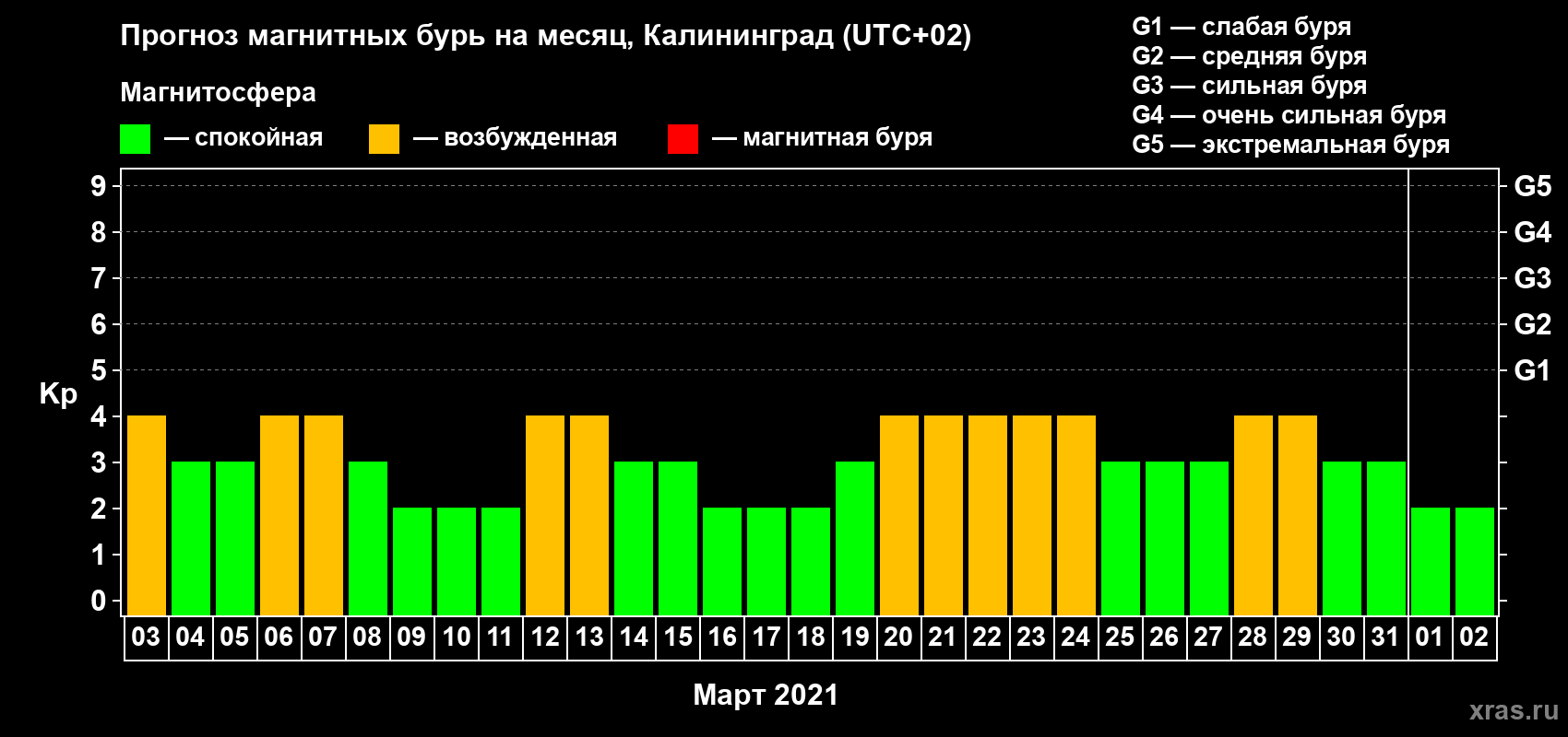 Прогноз магнитных бурь в Калининграде — 3 марта 2021 года