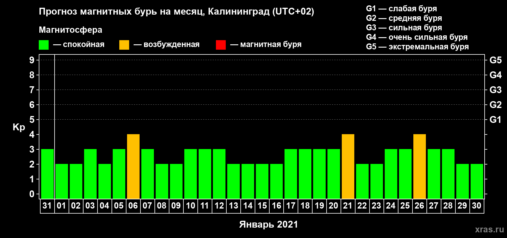 Прогноз магнитных бурь в Калининграде — 31 декабря 2020 года