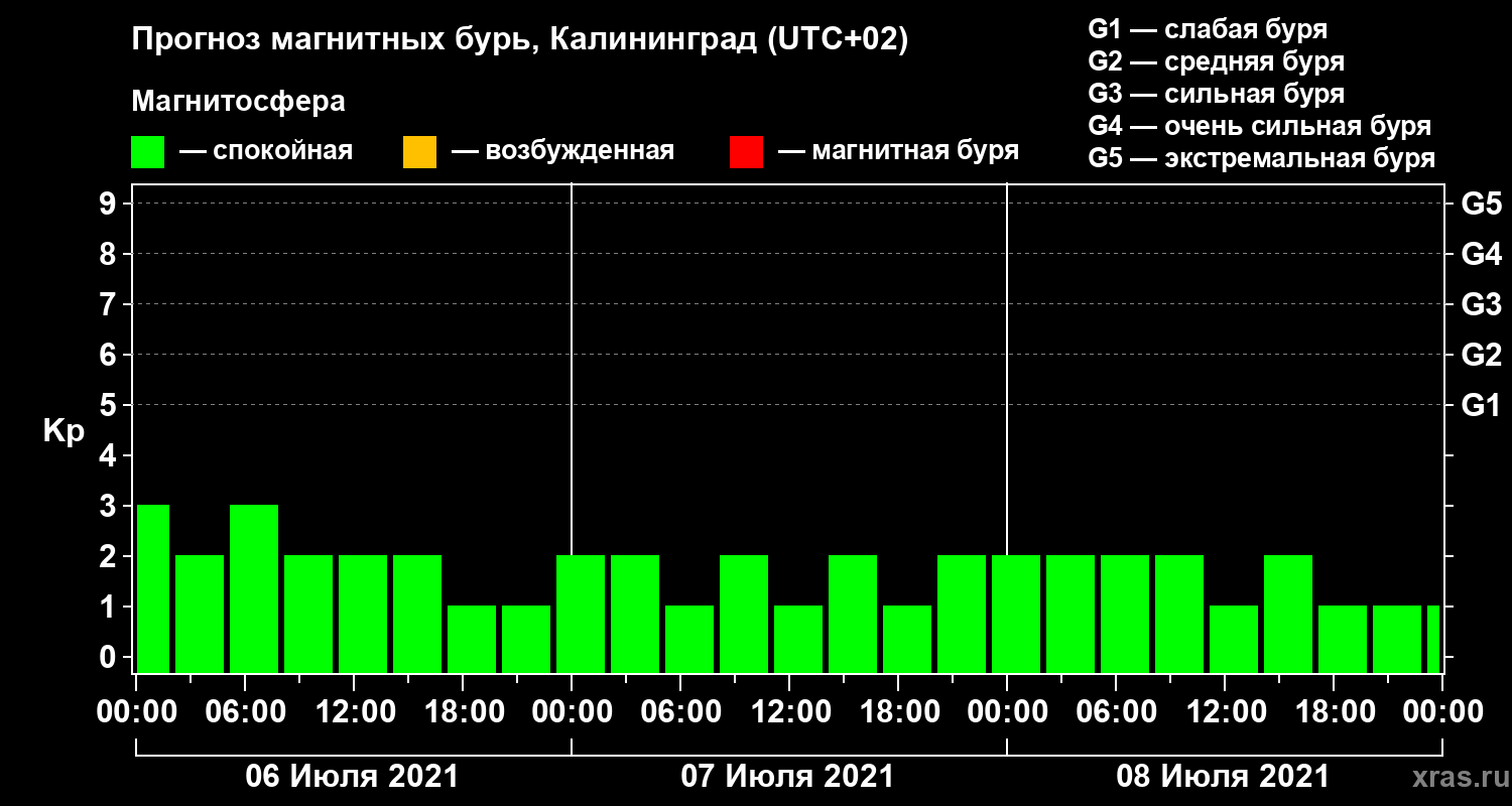 Прогноз магнитных бурь в Калининграде — 6 июля 2021 года