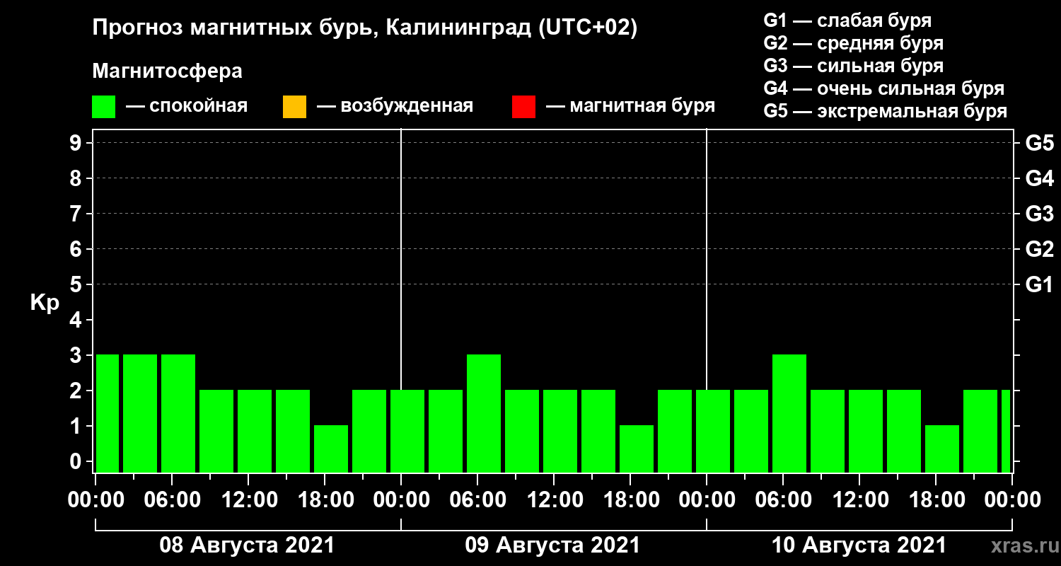Прогноз магнитных бурь в Калининграде — 8 августа 2021 года