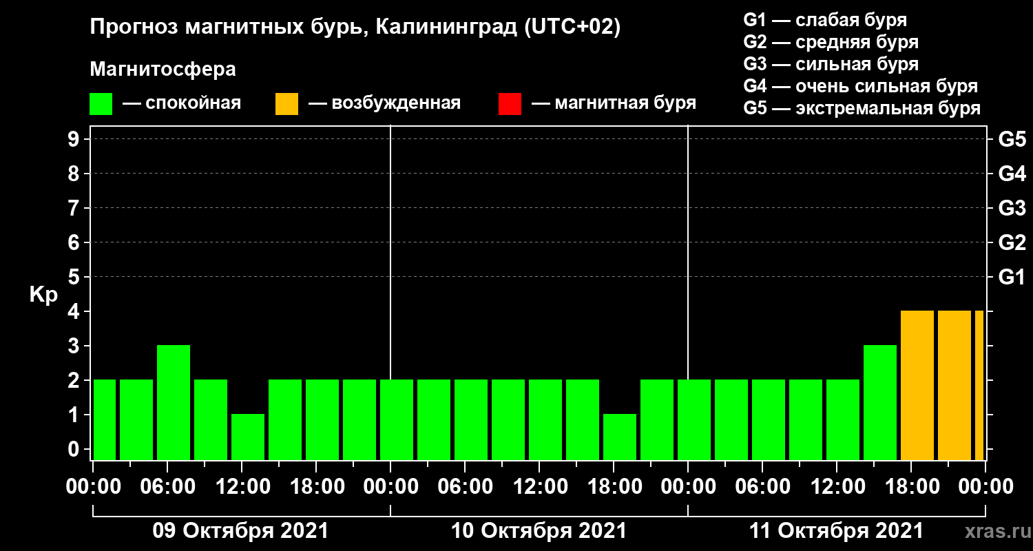 Прогноз магнитных бурь в Калининграде — 9 октября 2021 года