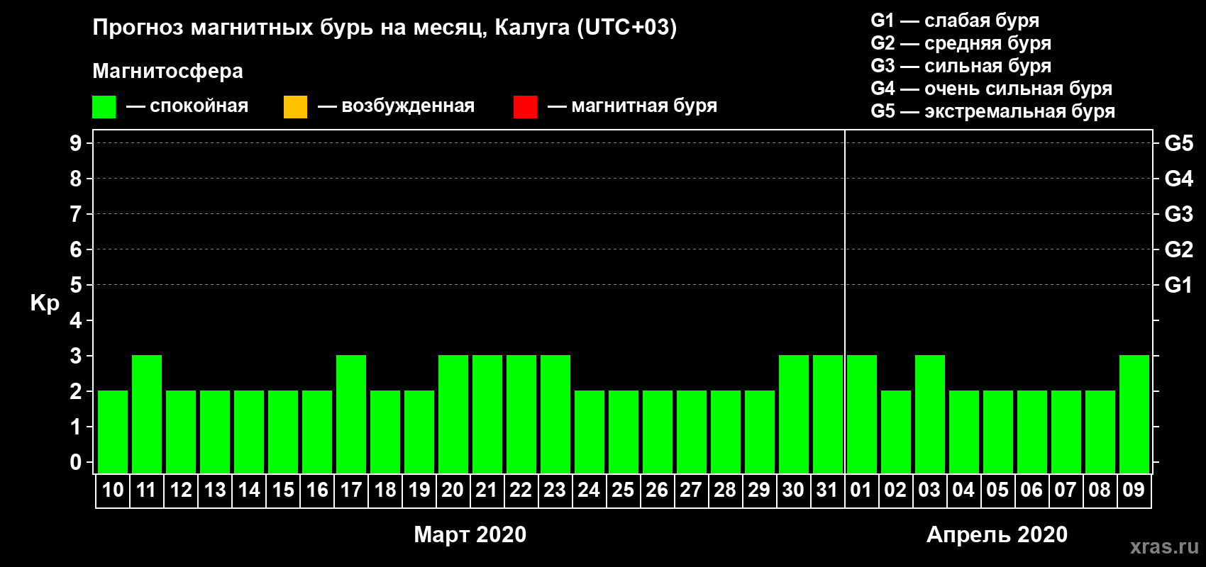Прогноз магнитных бурь в Калуге на 10 марта 2020 года