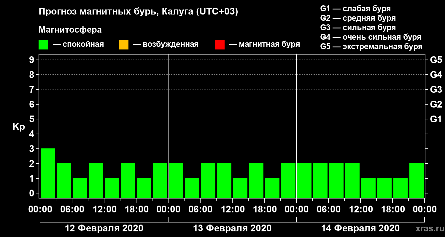 Прогноз магнитных бурь в Калуге на 12 февраля 2020 года
