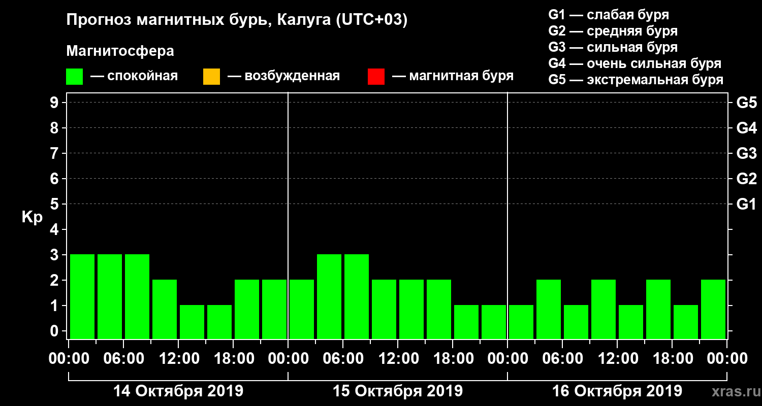 Прогноз магнитных бурь в Калуге — 14 октября 2019 года