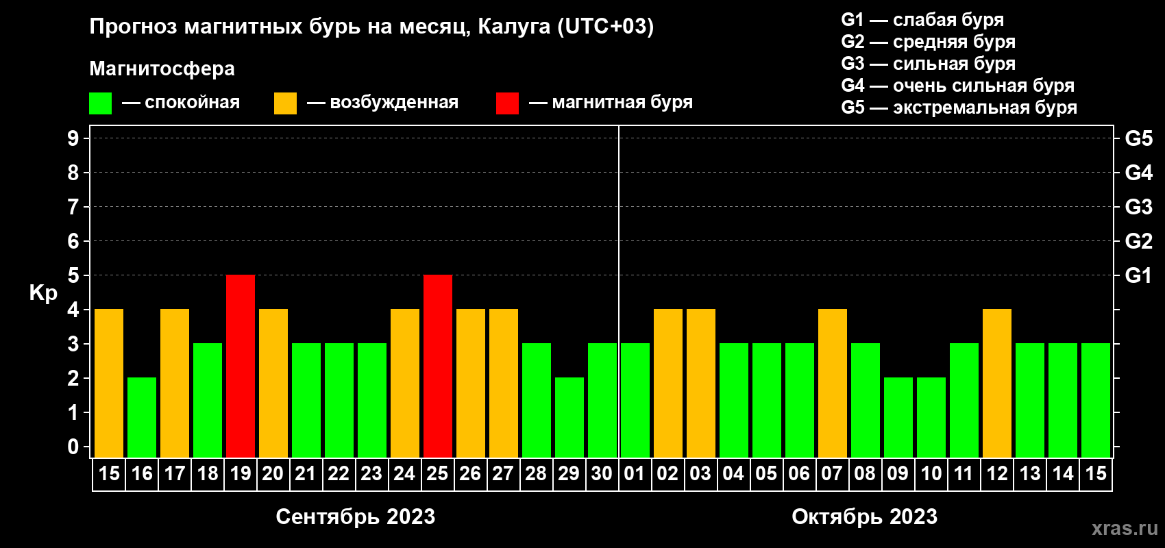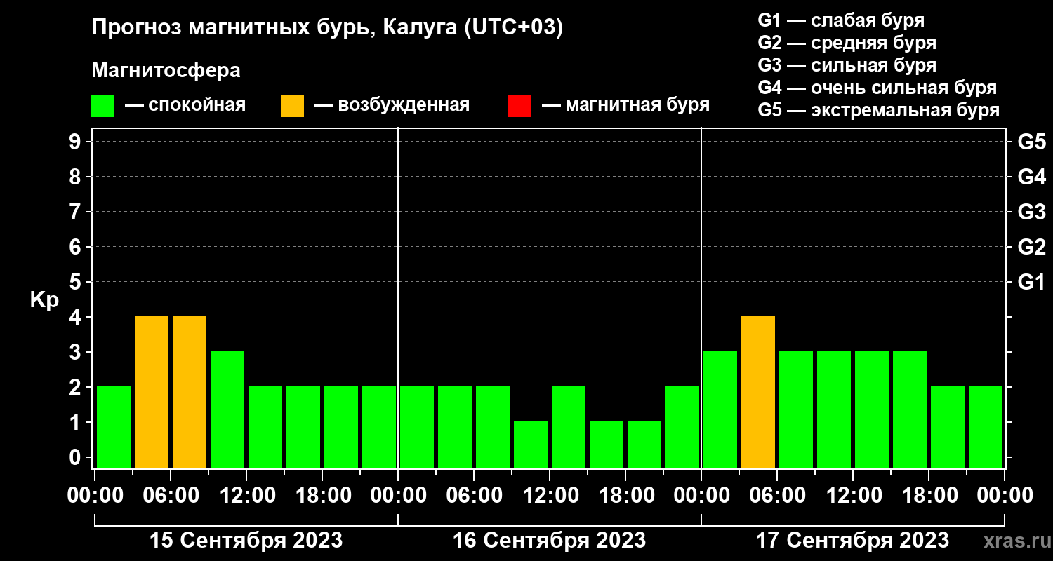 Прогноз магнитных бурь в Калуге — 15 сентября 2023 года