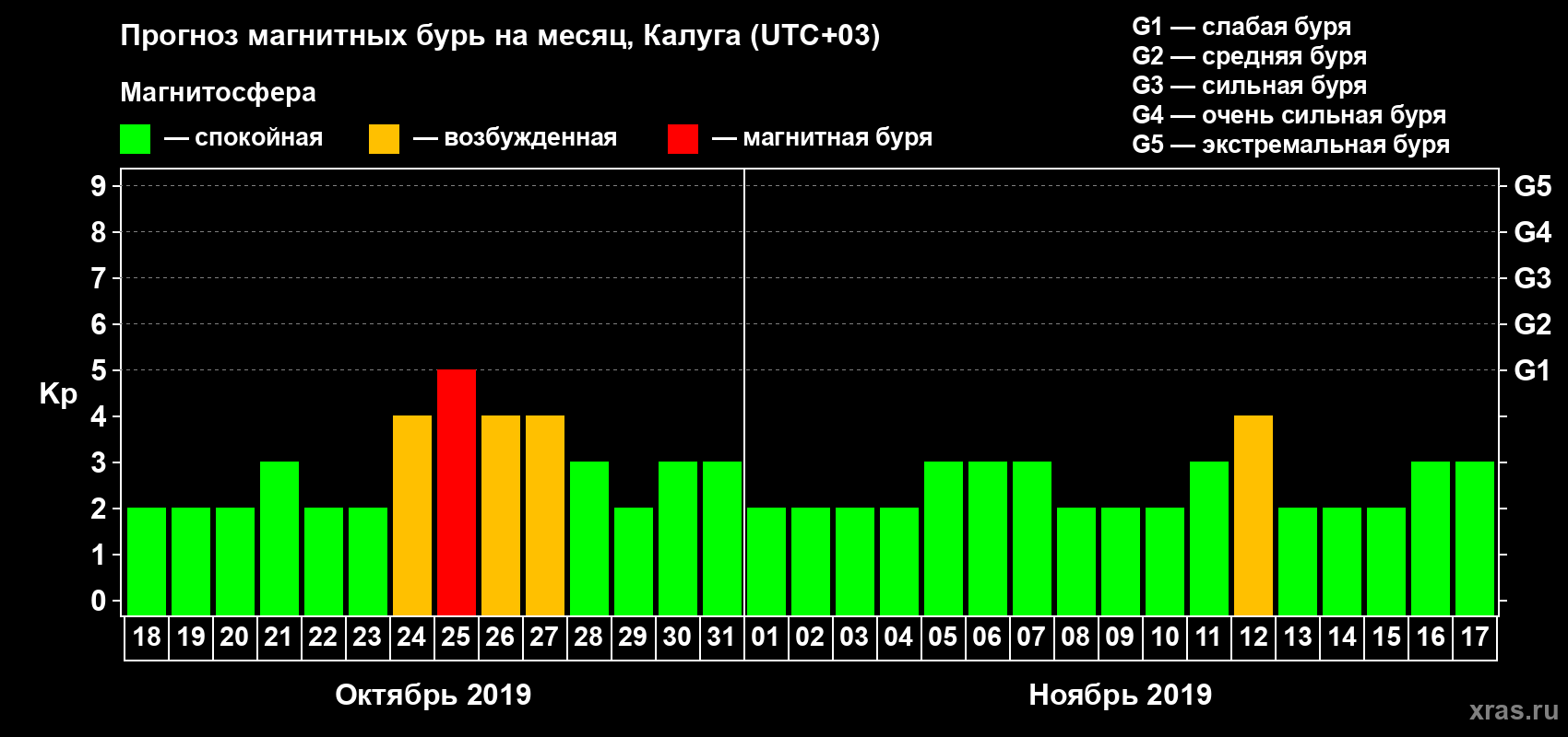 Прогноз магнитных бурь в Калуге — 18 октября 2019 года