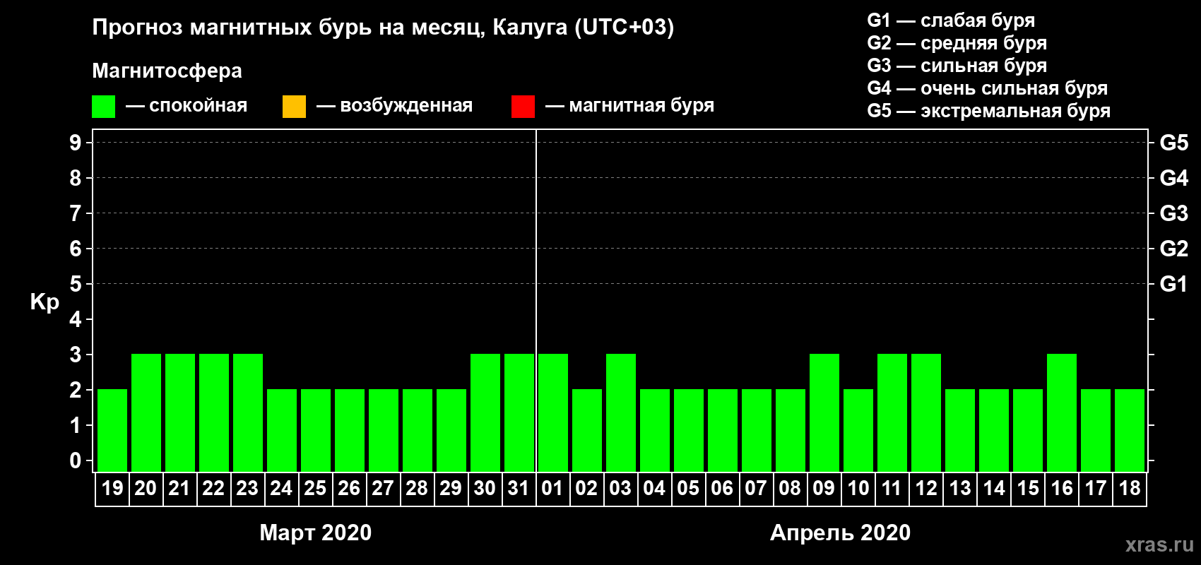 Прогноз магнитных бурь в Калуге — 19 марта 2020 года