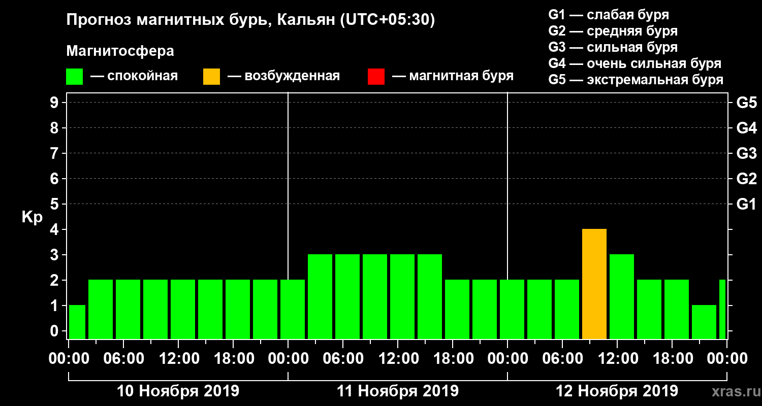 Прогноз магнитных бурь в Кальяне — 10 ноября 2019 года