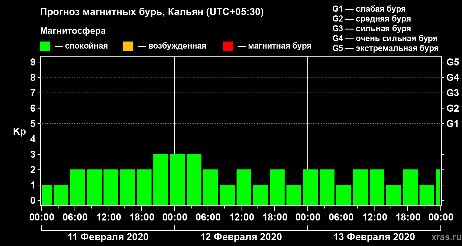 Прогноз магнитных бурь в Кальяне — 11 февраля 2020 года