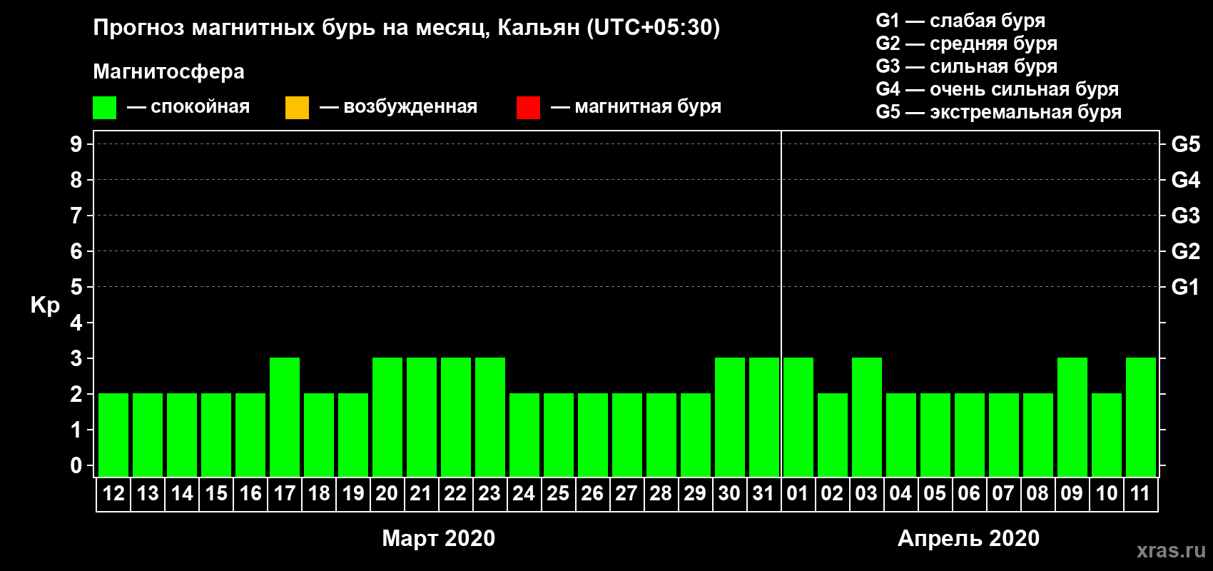 Прогноз магнитных бурь в Кальяне — 12 марта 2020 года