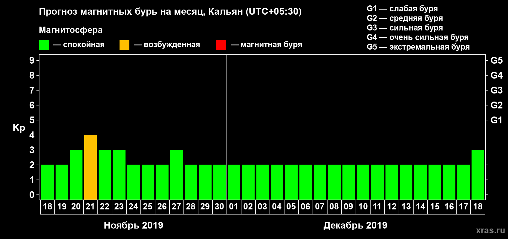 Прогноз магнитных бурь в Кальяне — 18 ноября 2019 года