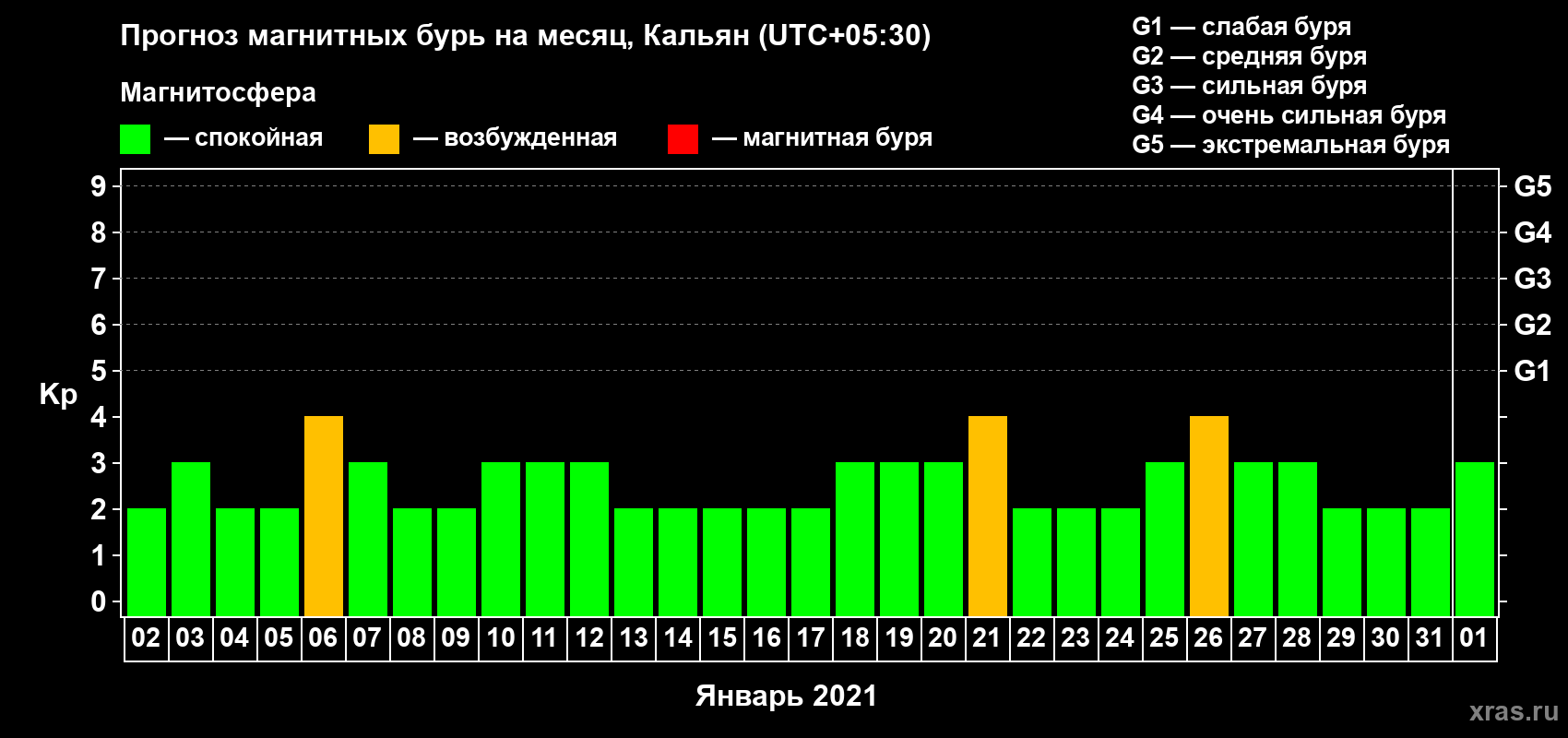 Прогноз магнитных бурь в Кальяне — 2 января 2021 года