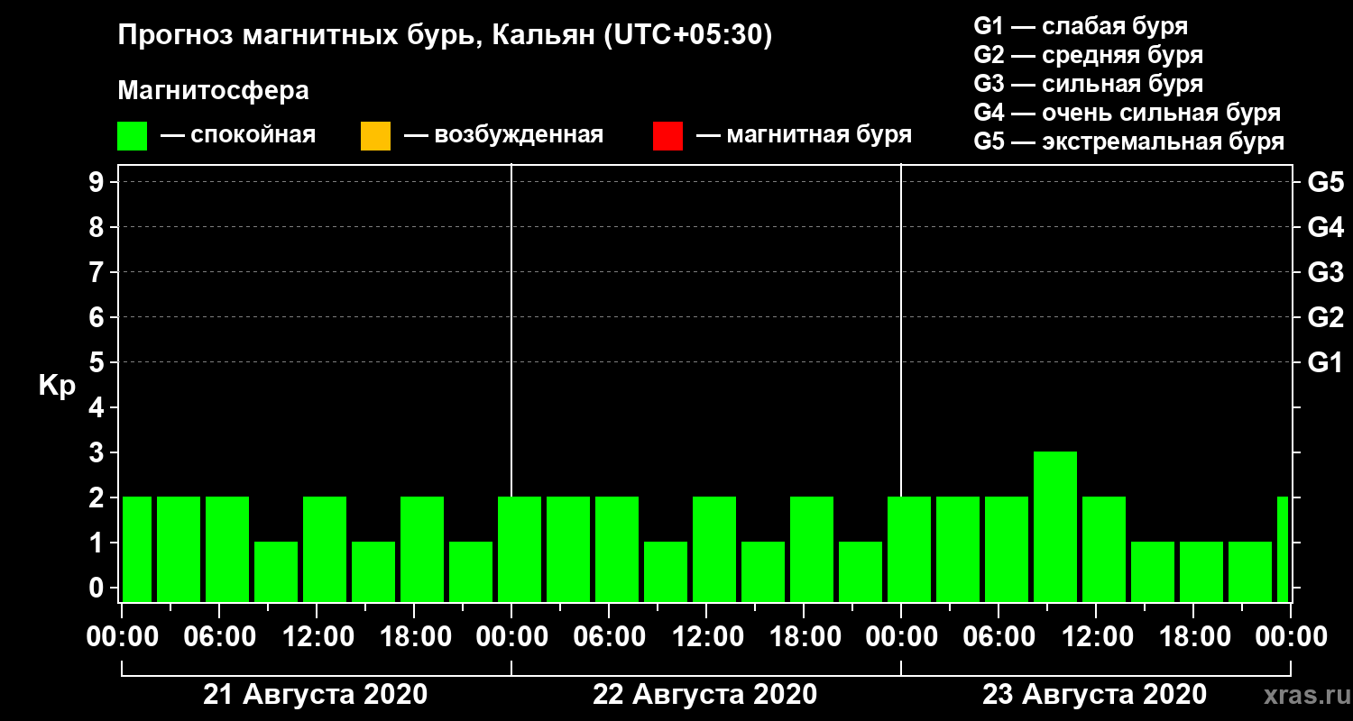 Прогноз магнитных бурь в Кальяне — 21 августа 2020 года