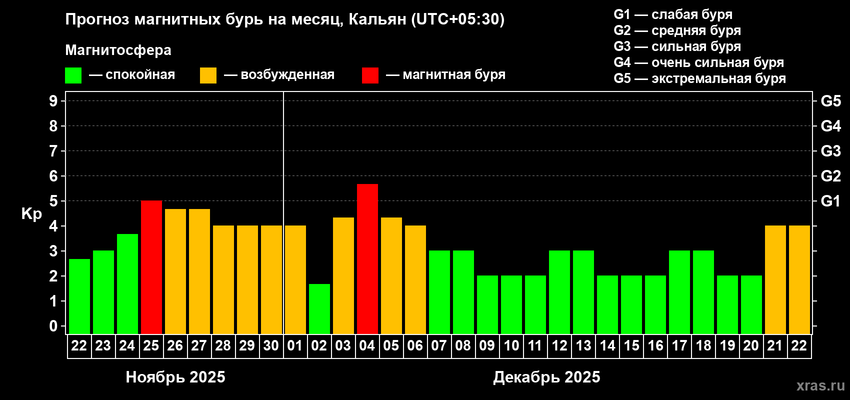 Прогноз магнитных бурь в Кальяне — 22 ноября 2025 года