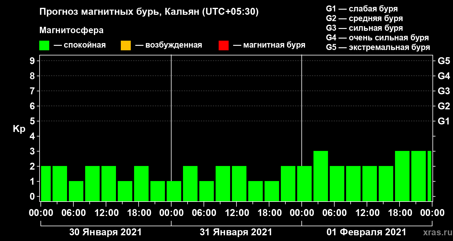 Прогноз магнитных бурь в Кальяне на 30 января 2021 года