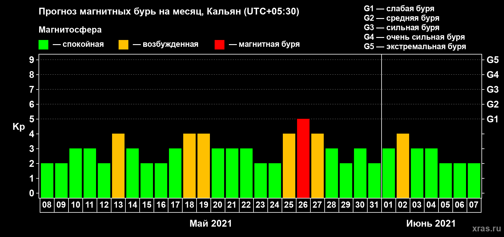 Прогноз магнитных бурь в Кальяне — 8 мая 2021 года