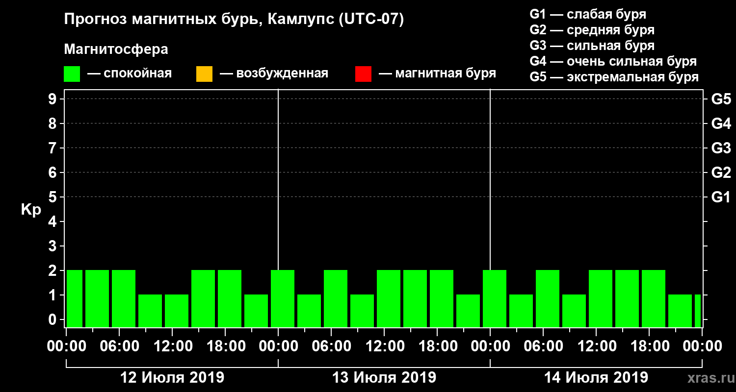 Прогноз магнитных бурь в Камлупсе на 12 июля 2019 года