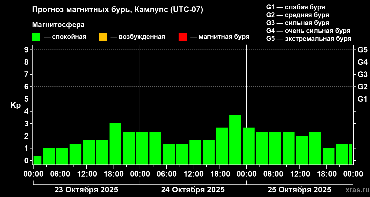 Прогноз магнитных бурь в Камлупсе на 23 октября 2025 года