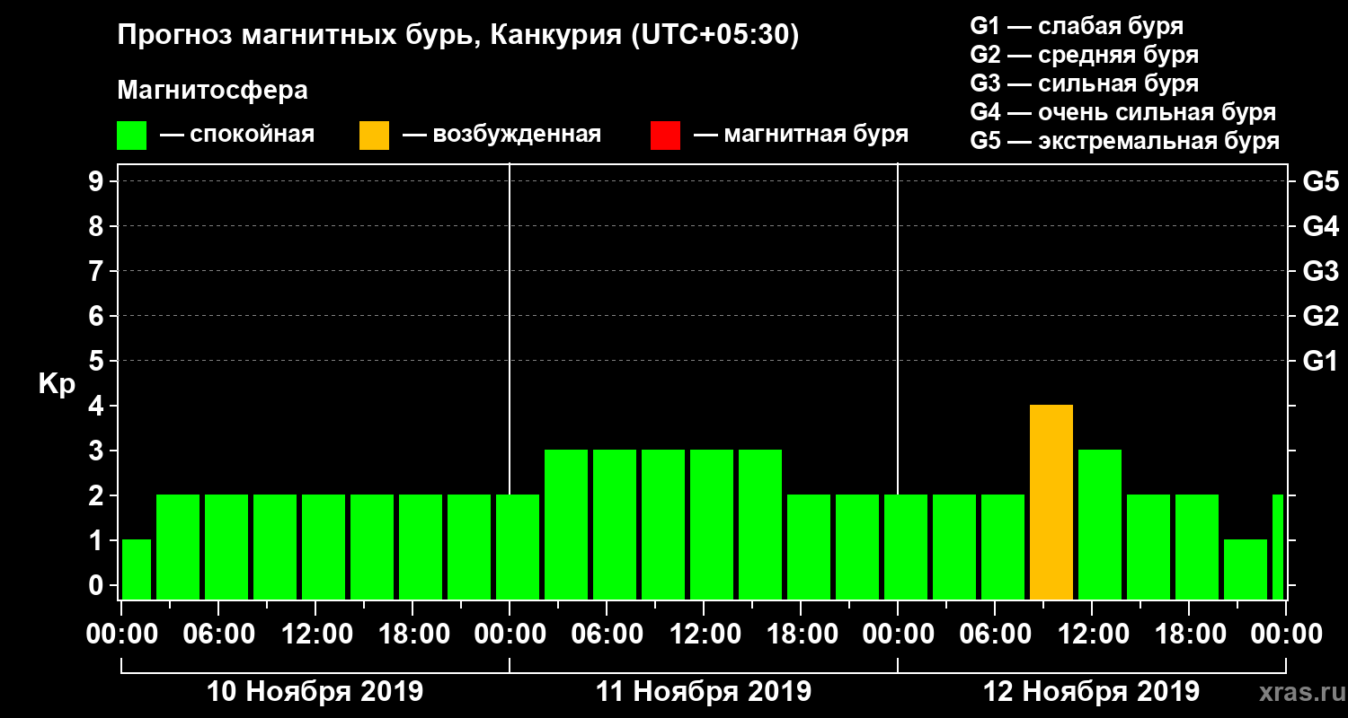 Прогноз магнитных бурь в Канкурии — 10 ноября 2019 года