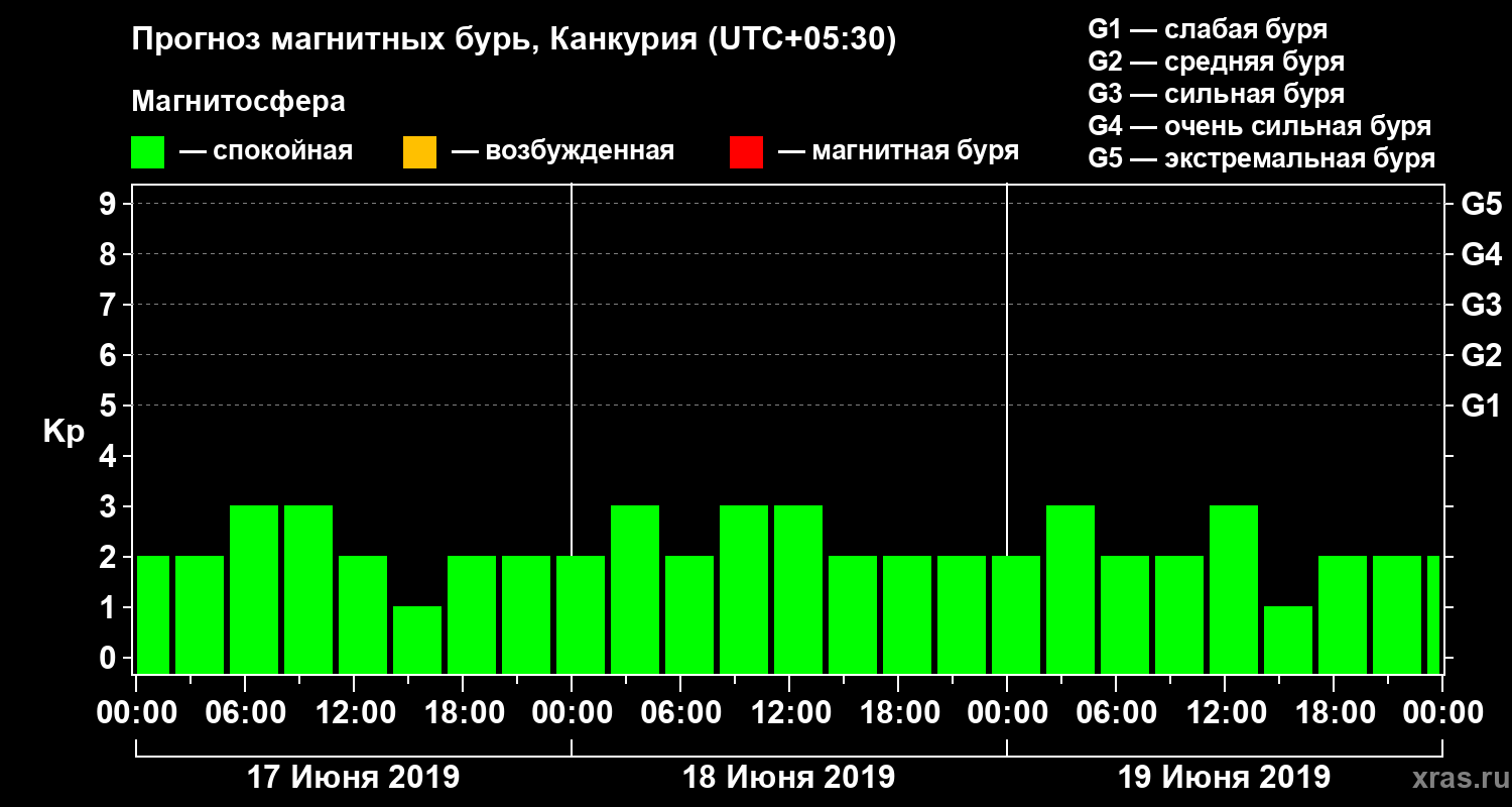 Прогноз магнитных бурь в Канкурии — 17 июня 2019 года
