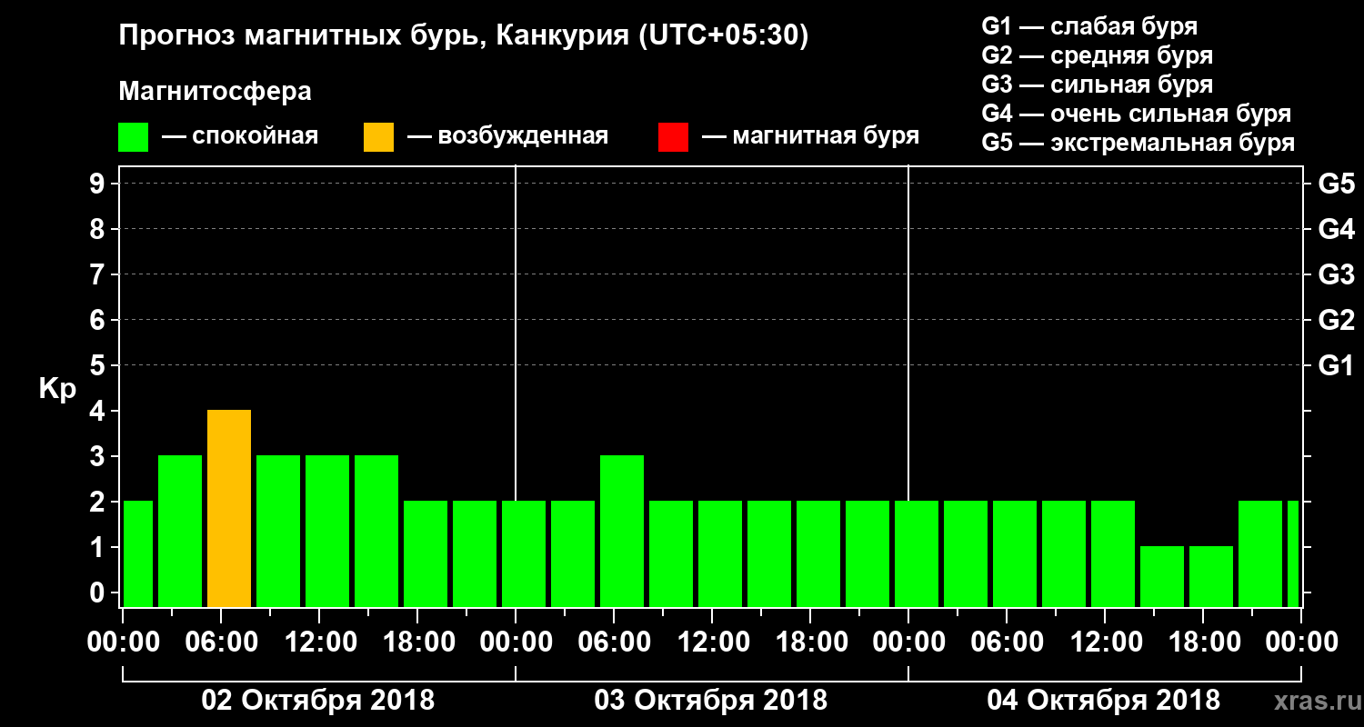 Прогноз магнитных бурь в Канкурии — 2 октября 2018 года