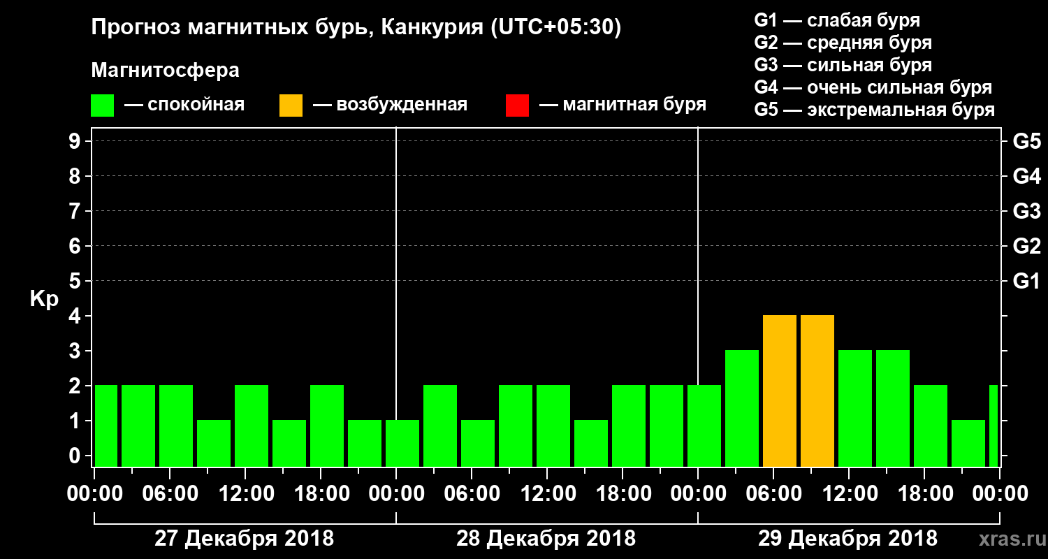 Прогноз магнитных бурь в Канкурии — 27 декабря 2018 года