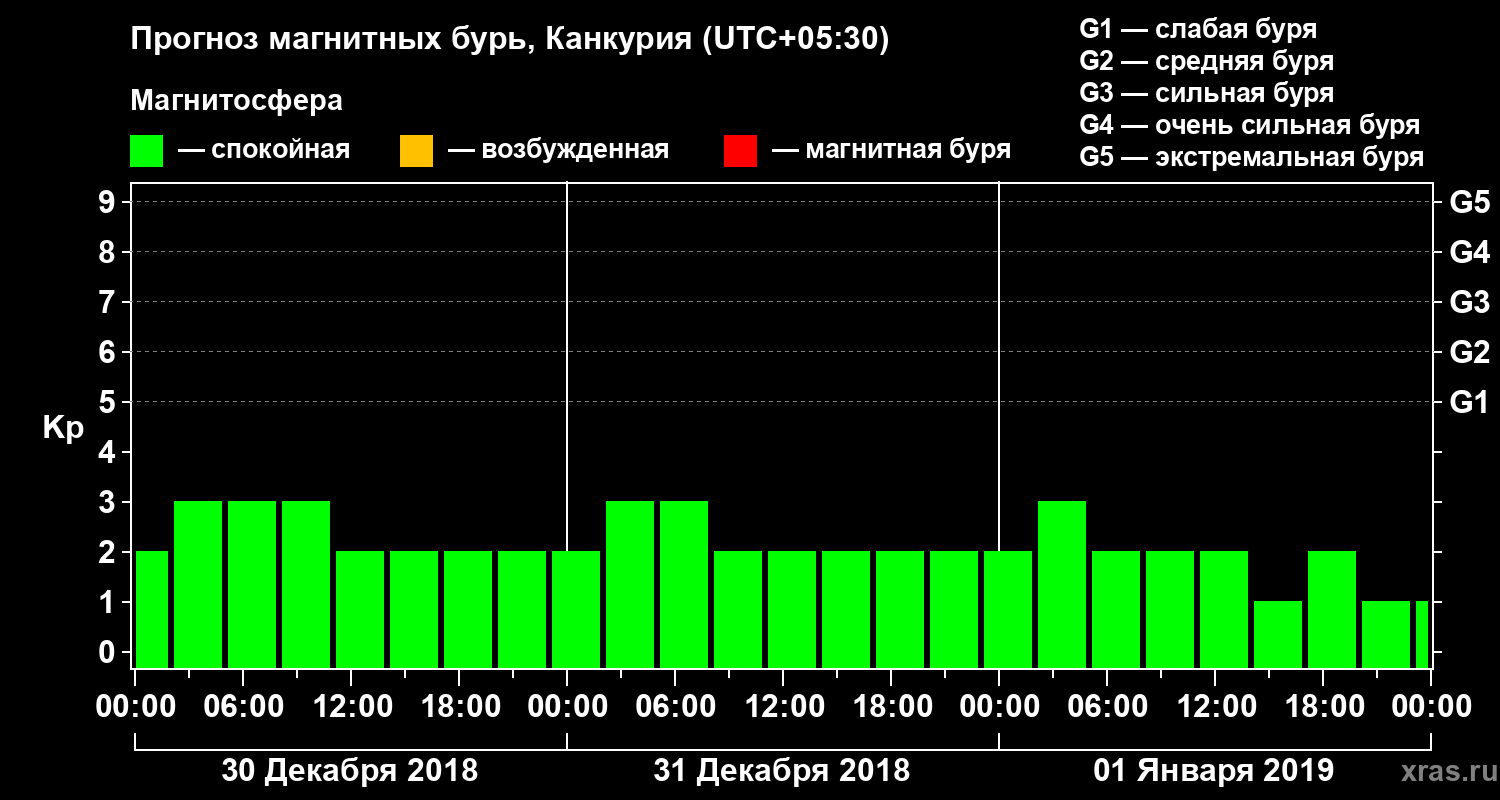 Прогноз магнитных бурь в Канкурии на 30 декабря 2018 года