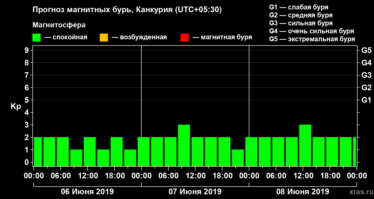 Прогноз магнитных бурь в Канкурии — 6 июня 2019 года
