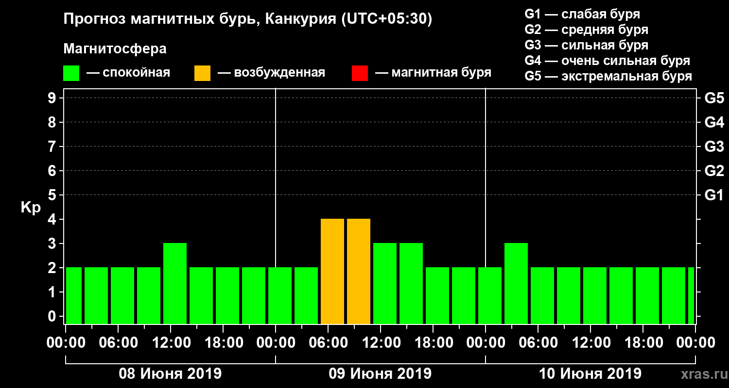 Прогноз магнитных бурь в Канкурии — 8 июня 2019 года