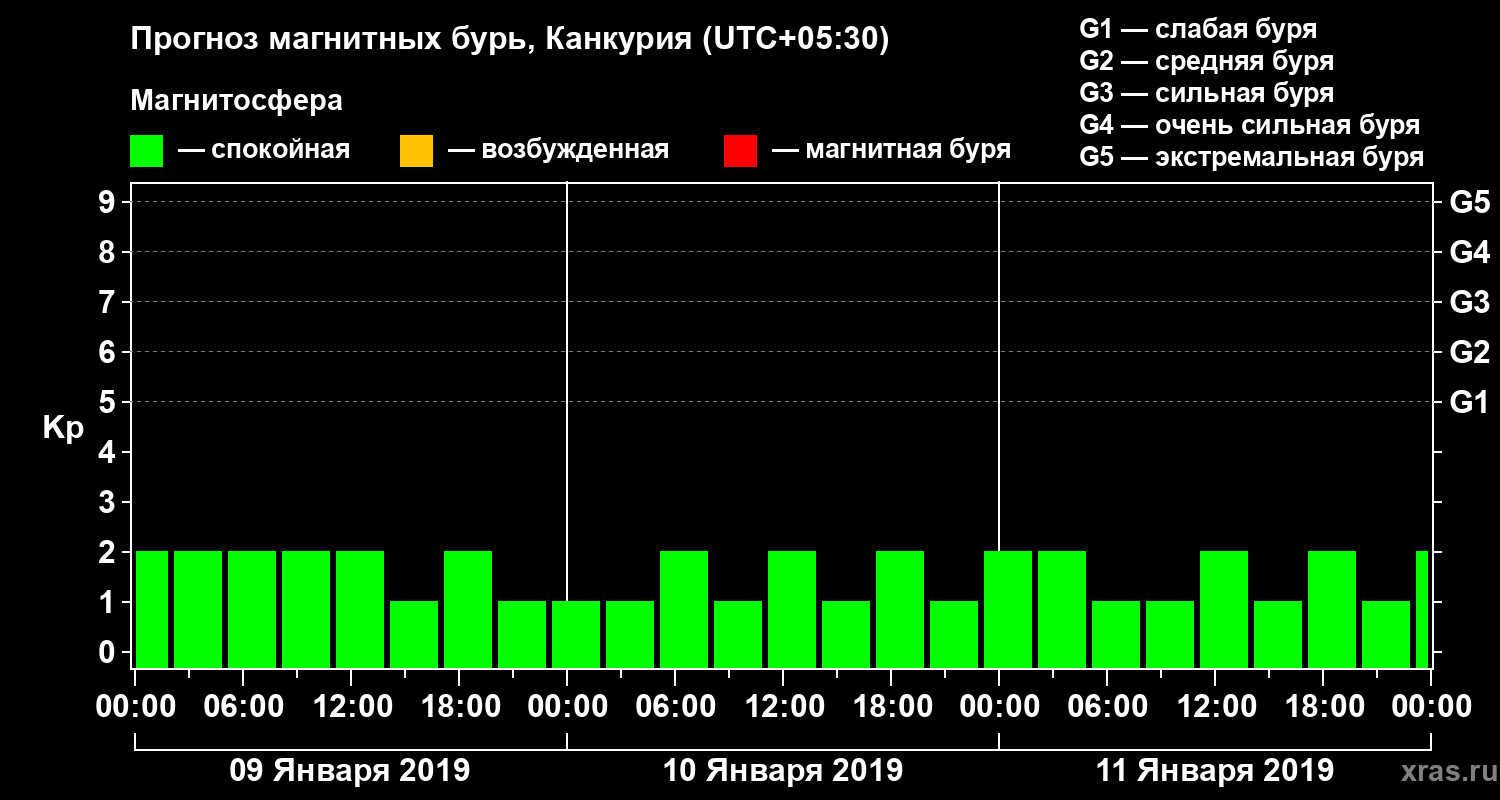 Прогноз магнитных бурь в Канкурии — 9 января 2019 года