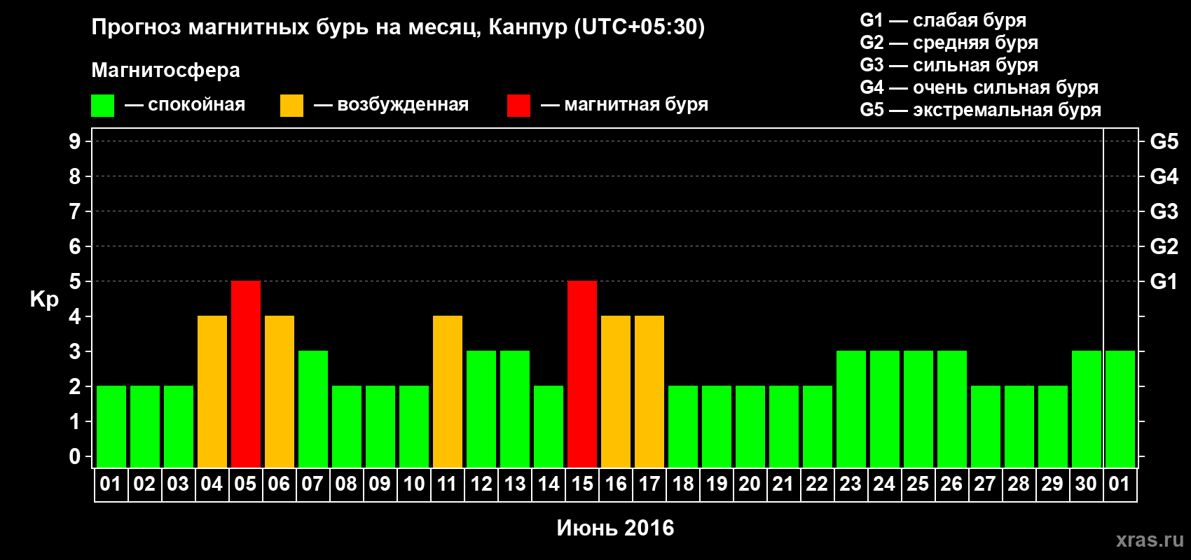 Прогноз магнитных бурь в Канпуре — 1 июня 2016 года