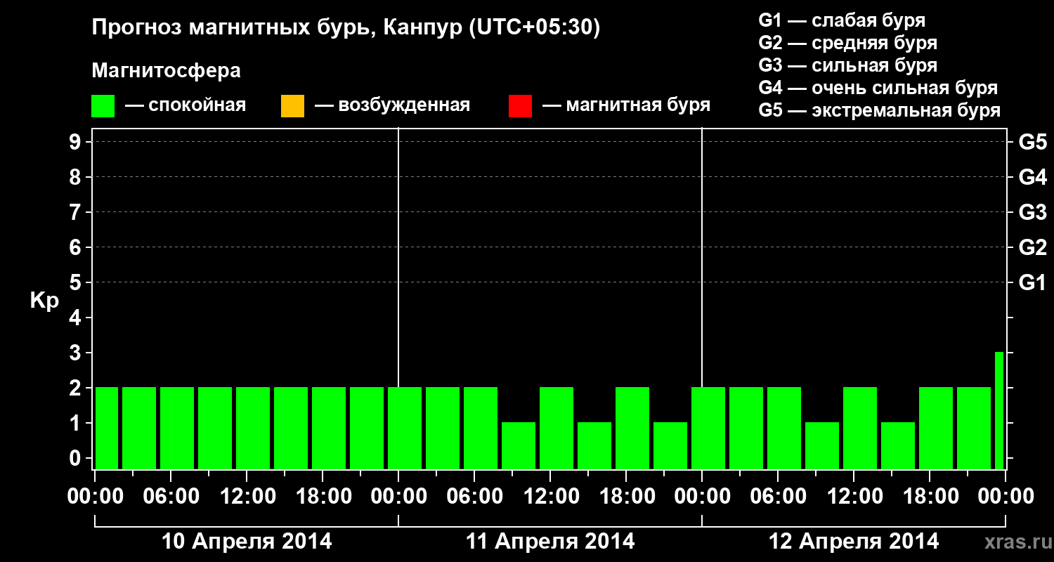 Прогноз магнитных бурь в Канпуре — 10 апреля 2014 года